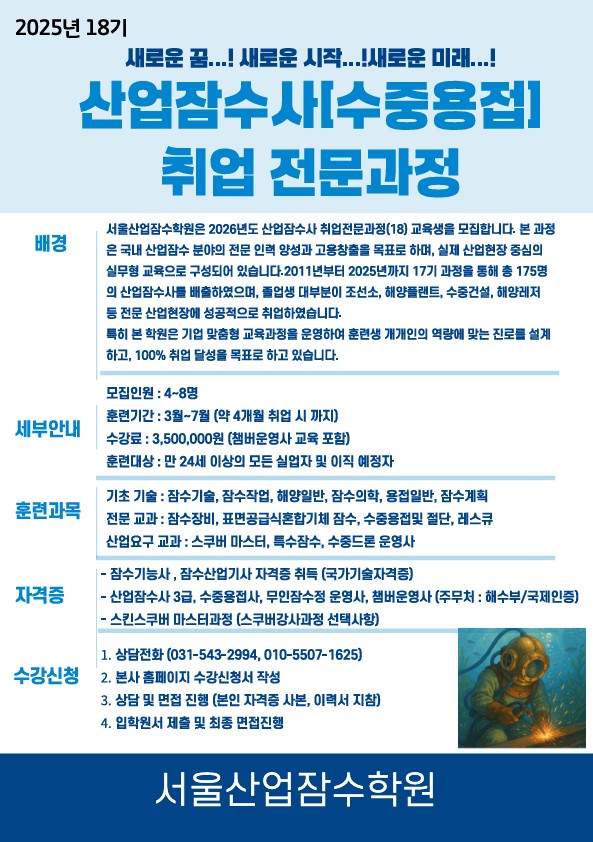 🩵 2026³â »ê¾÷Àá¼ö»ç Ãë¾÷Àü¹®°úÁ¤ Á¦18±â ¸ðÁý ¾È³»¼