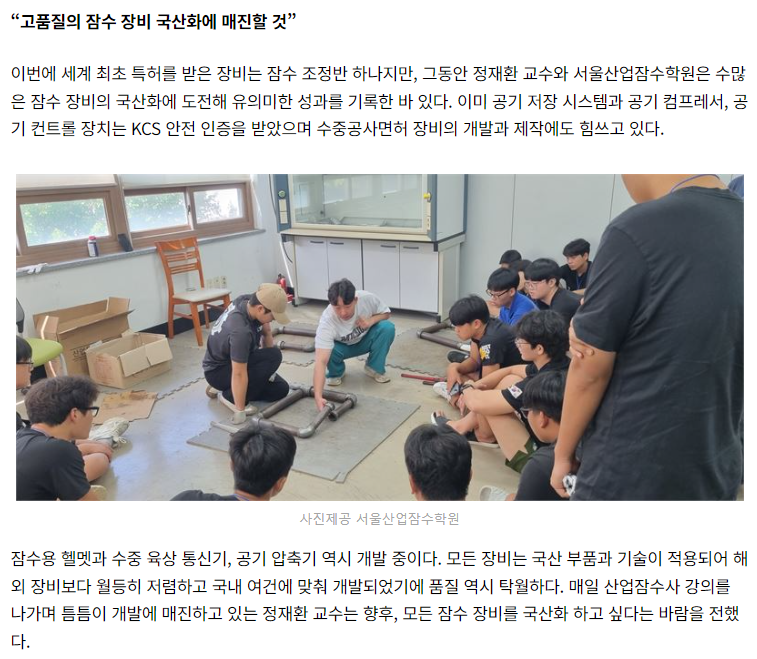 POST21NEWS ¼¿ï»ê¾÷Àá¼öÇпø Á¤Àçȯ ±³¼ö, ¼¼°è ÃÖÃÊ Àá¼ö Á¶Á¤ ÀåÄ¡ ƯÇãÃâ¿øÀ¸·Î ÈÁ¦